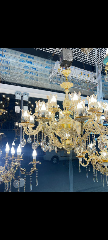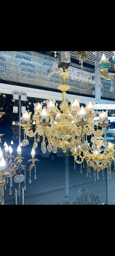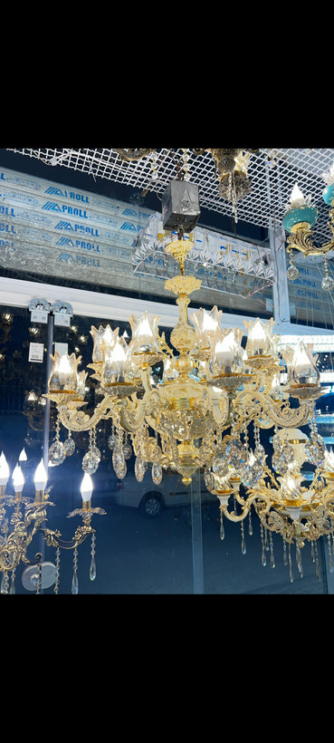 لوستر شاه عباسی پتینه طلایی مدل گلناز 23شعله زیر توری
